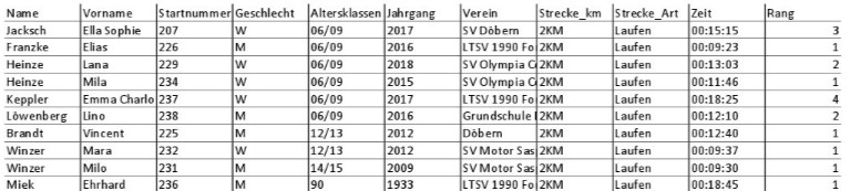 Laura Robel (SV Döbern) gewann die Gesamtwertung Weibliche Jugend und war mit ihrer Zeit schnellste weibliche Läuferin des Starterfeldes. In der Wertung Männliche Jugend siegte Nick Frischke vor Johannes Noack und Bastian Falk (alle SV Döbern).